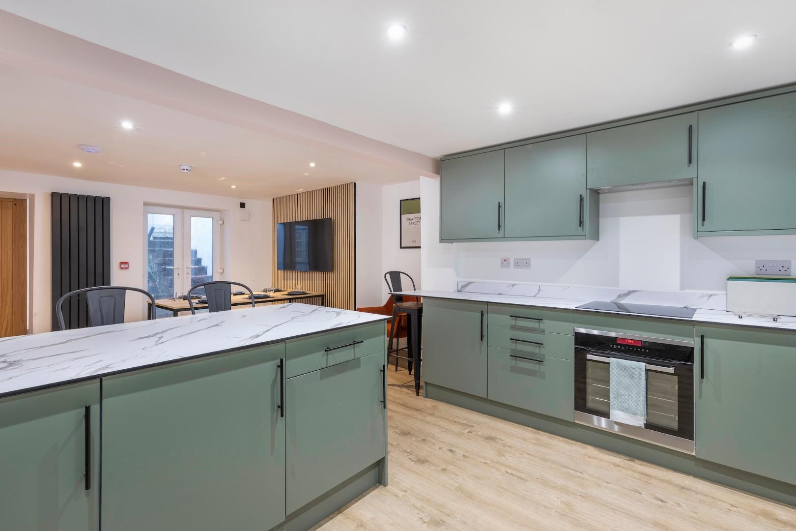 The house itself has been thoughtfully designed for shared living and offers an impressive communal kitchen and dining space that genuinely works day to day, complete with two ovens, two fridges, two freezers, ample cupboard and worktop space, all cooking equipment provided and a communal dining area with TV, plus a private outdoor patio for warmer months.